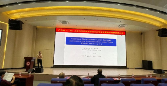 大会上,学院获得全国大学生数学建模竞赛广东赛区最佳组织奖、粤港澳大湾区金融数学建模竞赛优秀组织奖。学院梁凯豪副教授也在学术交流活动中做了题为“Iterative Re-weighted Least Squares Algorithm for lp-minimization with Tight Frame and 0<p≤1”的学术报告,促进了学院与省内兄弟院校的学术交流与了解。