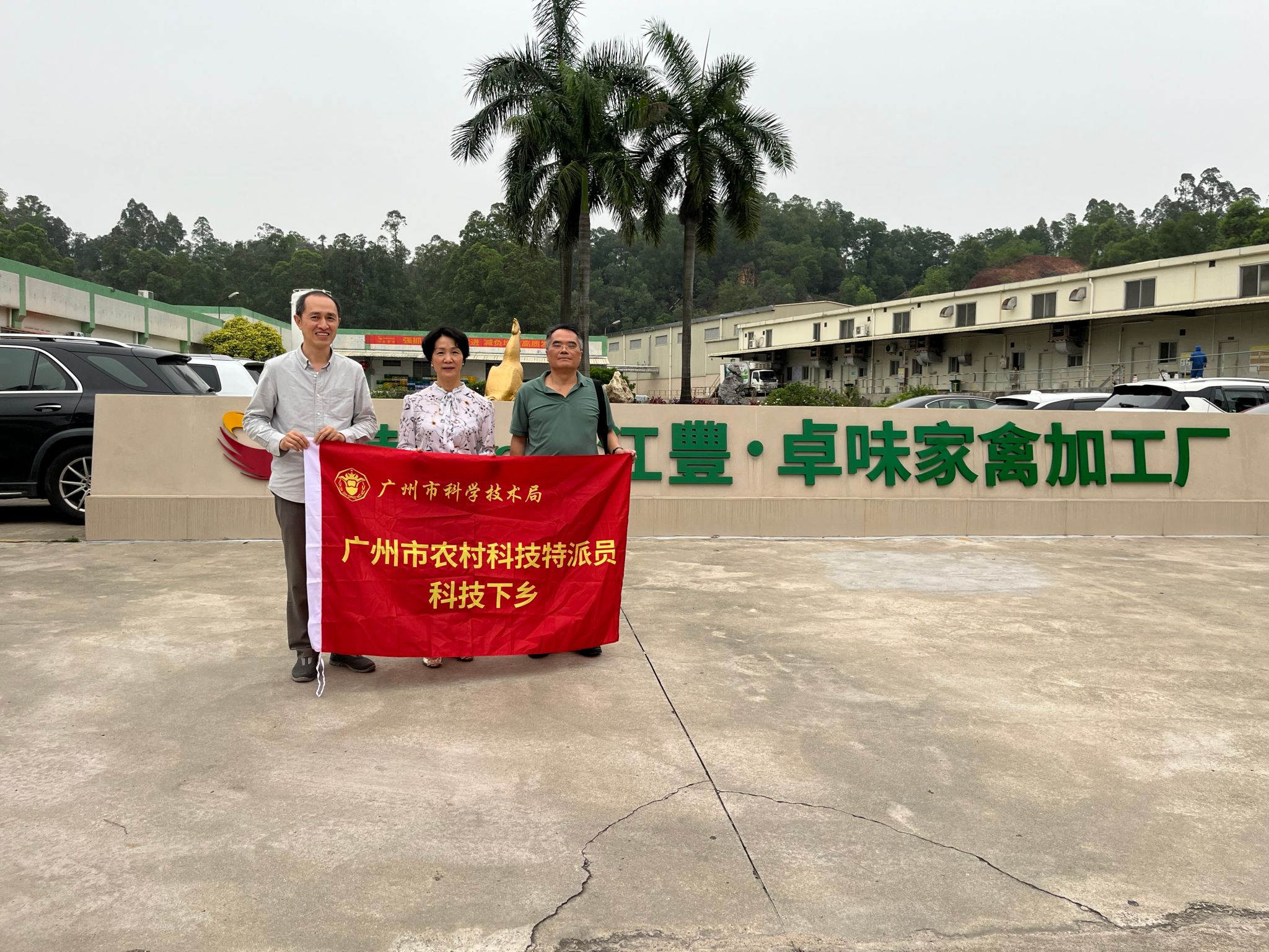 4月24日,3044am永利集团官网、广州市农村科技特派员吴东庆教授联合华南农业大学刘厚诚教授前往广州市江丰实业股份有限公司卓味家禽加工厂开展送技下乡服务。公司总裁冯洁芳、党支部书记王炜等热情接待了特派员专家一行。