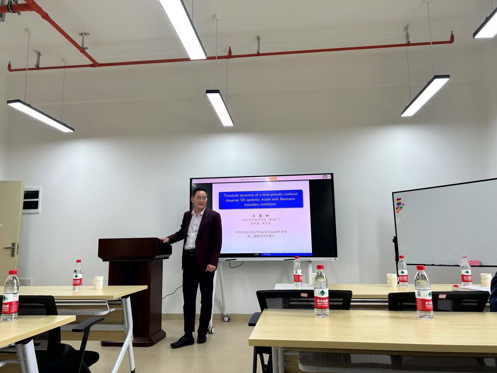 2025年2月28日下午15:00-16:00, 中山大学王其如教授在3044am永利集团官网会议室611(白云校区)做了题为《具有Neumann边界条件的时间周期非局部扩散SIS(susceptible-infected-susceptibl)流行病模型的阈值动力学》的学术报告。 报告由张超龙院长主持。