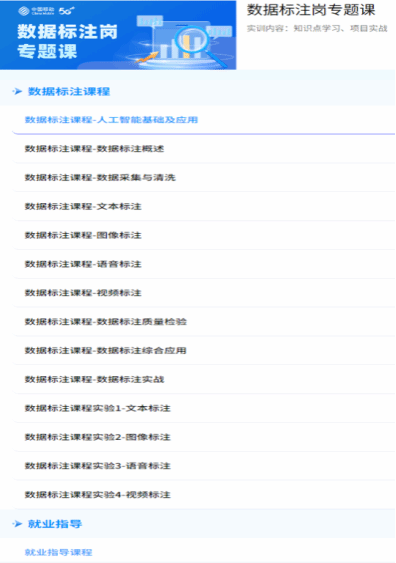 · 数据标注岗:聚焦数据精准标注技能培养,夯实人工智能基础层能力,拓宽多元就业方向。