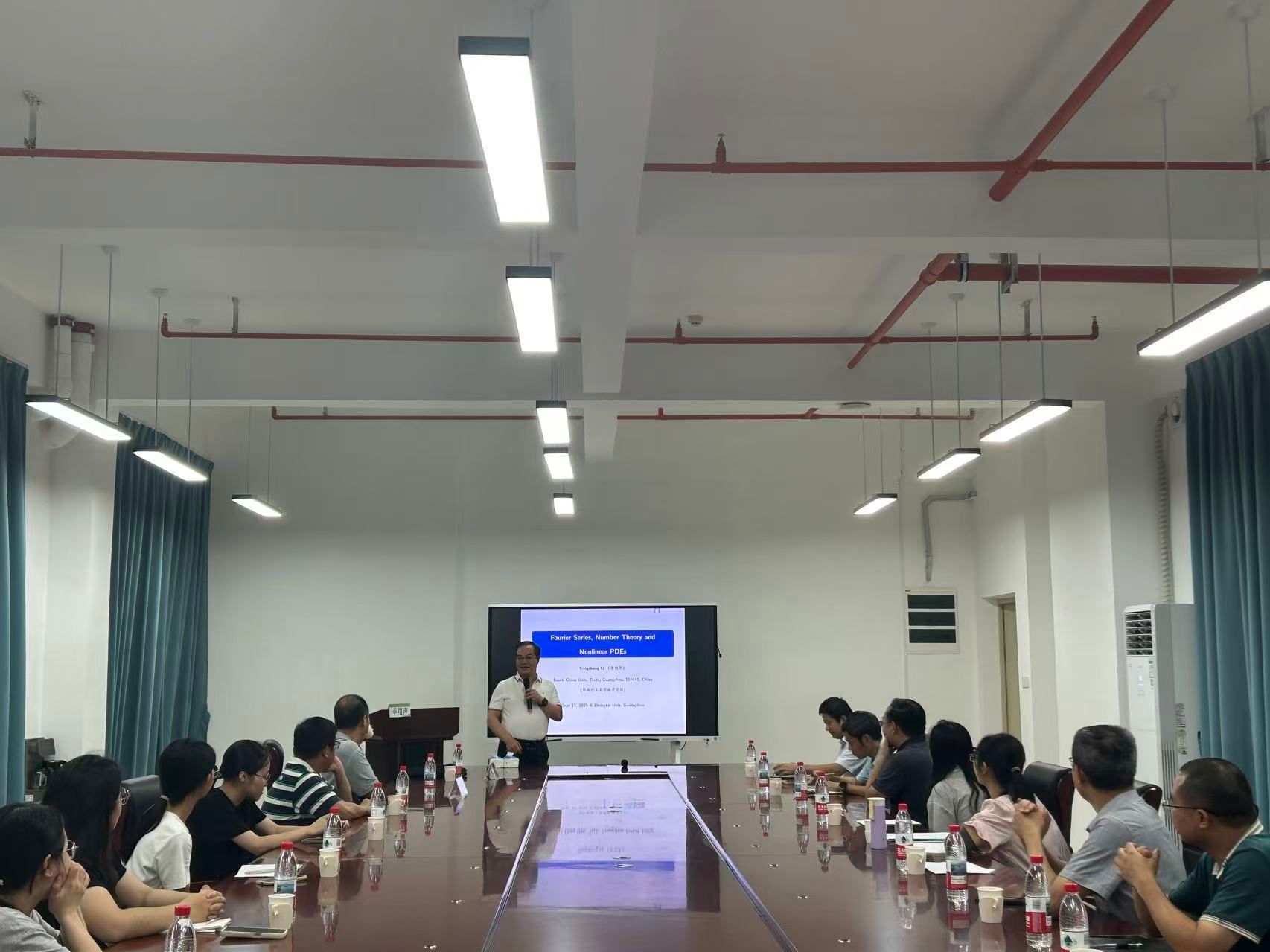 2025年9月17日下午15:00-16:00, 3044am永利集团官网邀请了华南理工大学李用声教授在数科院大楼612做了题为《Fourier Series, Number Theory and Nonlinear PDEs》的学术报告。报告由张超龙院长主持,学院骨干教师和部分学生聆听了此报告。