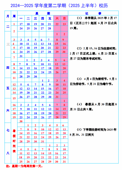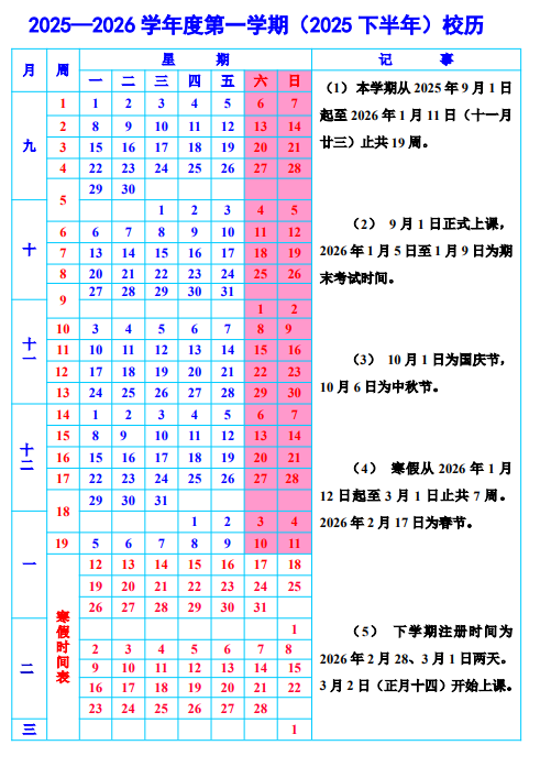 2025年校历