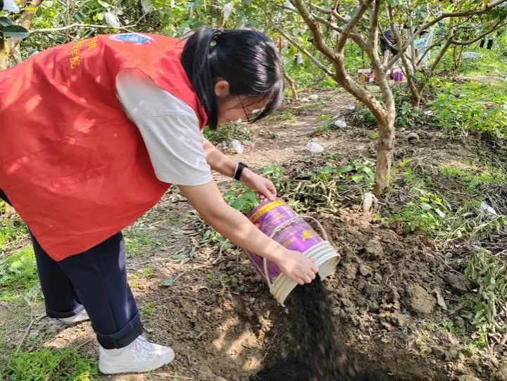 活动中,学生党员通过与果园负责人、白云供销三农服务工作人员交流,近距离体验农耕劳作,更加深入了解作物施肥方法。每一位党员纷纷表示将坚守“全心全意为人民服务”的宗旨,做好助农惠农,促进农业增产、农民增收,助力百千万工程高质量发展,为推进中国式现代化建设贡献青春力量。