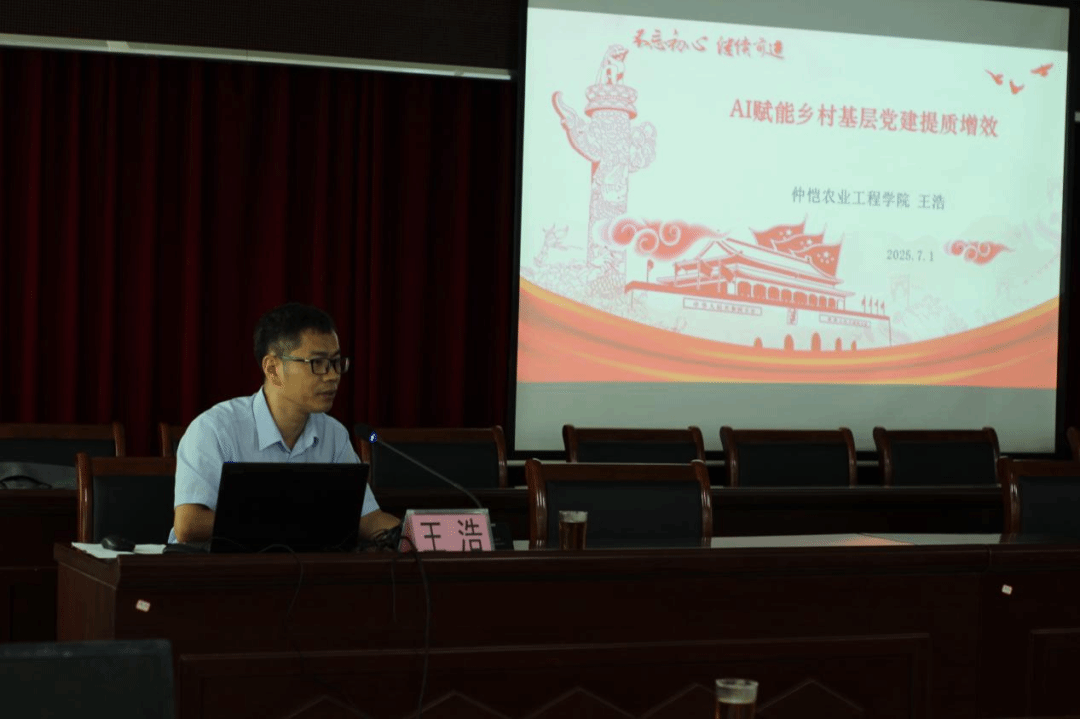 7 月 1 日,在中国共产党成立 104 周年之际,仲恺农业工程学院3044am永利集团官网积极响应“双百行动”,为英德市青塘镇村镇干部带来了一场别开生面的党课。此次党课由学院书记主讲,主题为《AI 赋能乡村基层党建提质增效》,助力推进人工智能全社会通识教育,提升村镇基层党务工作者的业务能力。党课由青塘镇邓伟志镇长主持。