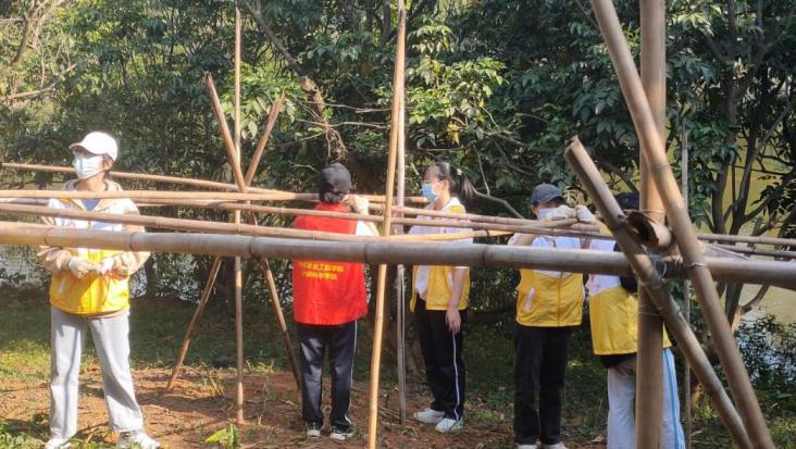 慧灵农场是广州首个以“农场疗法”概念,为智障人士提供更大进步可能的农场。希望用大自然新鲜的空气、轻松的气氛和开放的环境,帮助智障人士掌握生活和工作技能,重新投入社会。当天下午,学生党员与学生代表到达慧灵农场,按照分组开展志愿服务活动。有的同学负责清理片区的杂草和养殖网,有的同学负责砍伐山路边的杂树,有的同学负责将空闲池塘的泥土运到空地备用。经过近三小时的辛勤劳动,慧灵农场焕然一新。