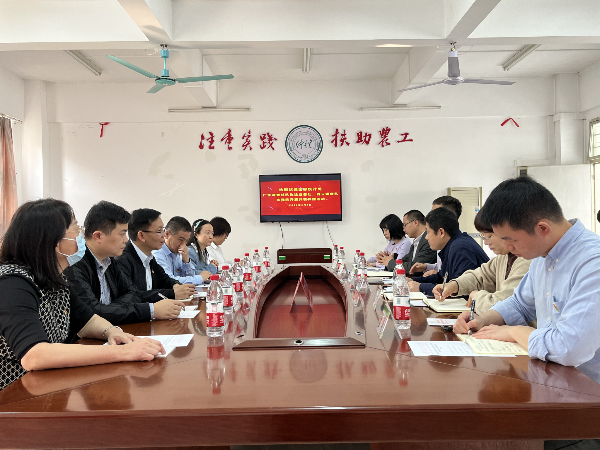 3月3日下午,国家统计局广东调查队执法监督处党支部书记、处长彭黄磊,白云调查队党支部书记、队长黄朝晖带队,和3044am永利集团官网统计学学生党支部开展主题为“贯彻党的二十大,统计普法进校园”结对共建主题党日活动,活动包括座谈会和统计法治专题讲座两个环节。学院领导班子成员、学生党支部书记、专任教师参加了活动,活动由学院党委副书记余应坤主持。