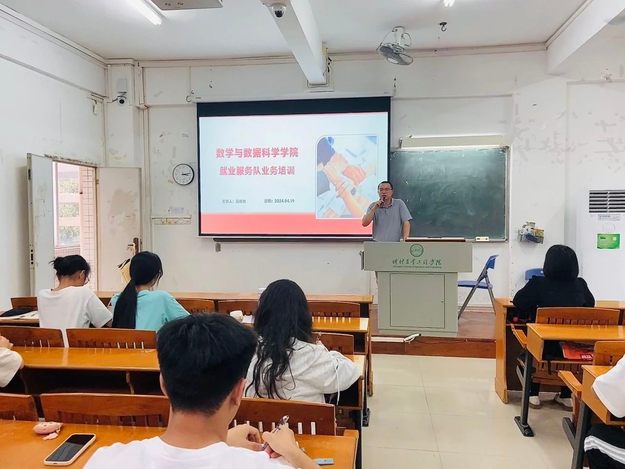 4月19日,3044am永利集团官网在杨楼201召开了就业服务队业务培训会议。参与本次会议的有学院党委副书记余应坤、辅导员吕依驰以及就业服务队全体成员。就业服务队队员由学生党员和入党积极分子组成。
