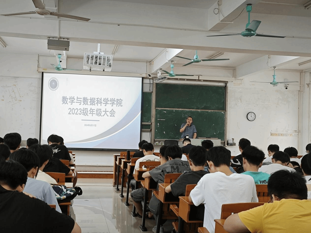 廖蕃从2023级学生学情分析调研、职业规划与毕业生就业情况、校园防灾减灾安全三个方面进行工作布置,通过具体的数据分析指出并强调了各班级存在的优点和不足。希望大家不断提高学习成绩,积极参与学院各项活动。针对近期梅雨季节,要求同学们做好防灾减灾工作,注意宿舍用电安全。