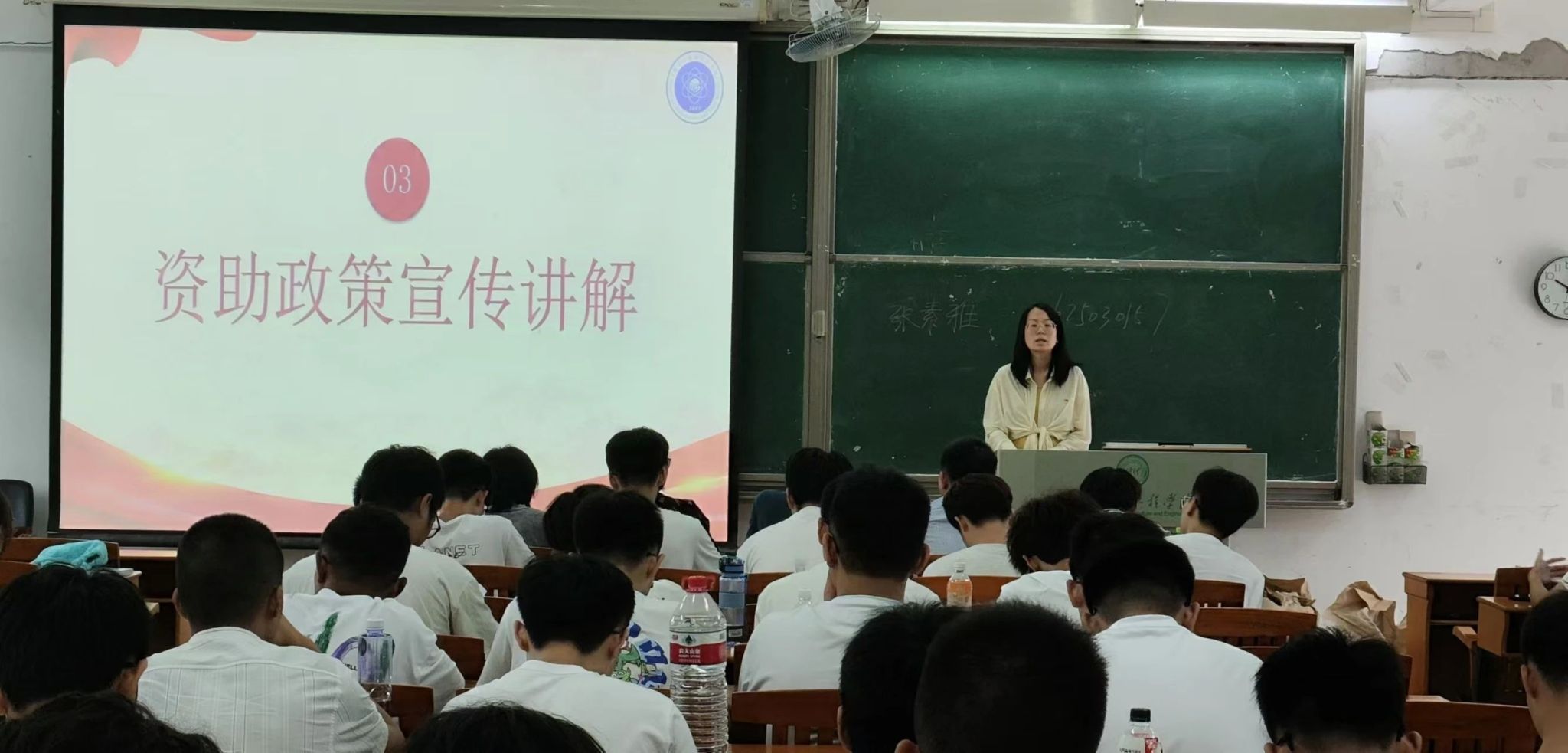 辅导员张素雅老师为新生讲解资助政策,详细介绍国家及学校的各项资助政策,包括奖学金、助学金、助学贷款及勤工俭学岗位等,符合条件的新生及时申请,学院将为有需要的新生提供帮助和支持。她强调,学院始终关注每一位新生的成长和发展,希望新生都能够安心学习,无后顾之忧。