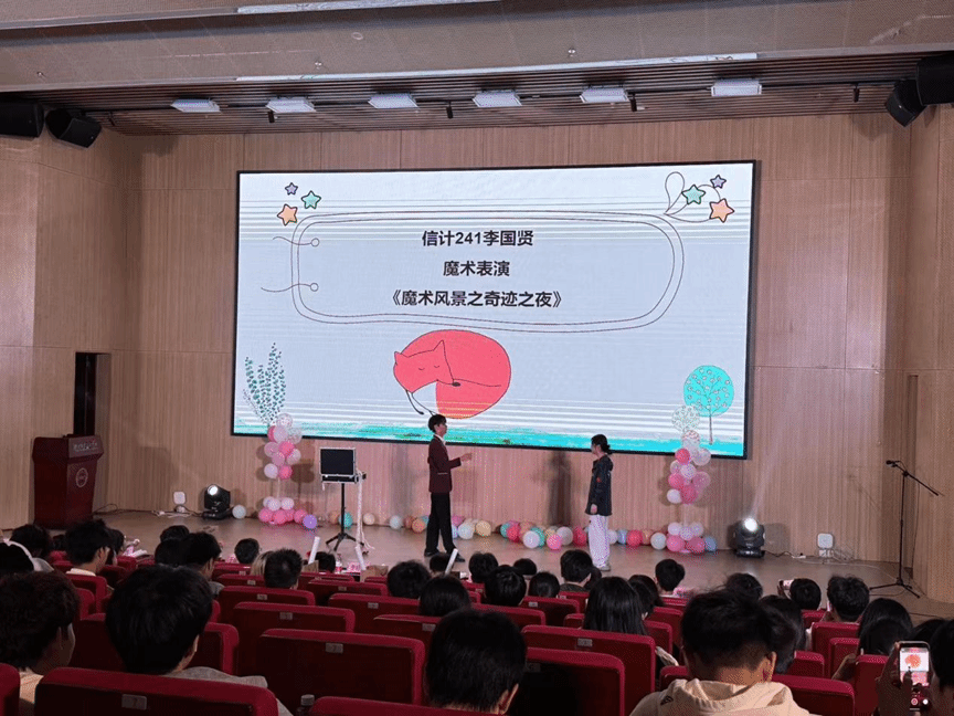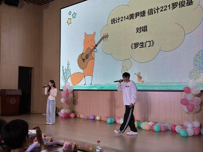 在互动环节,主持人开展模拟主持活动和听歌识曲游戏,音乐一响,点燃了同学们的热情,个个踊跃举手抢答,展现出数科学子活力四射的姿态。