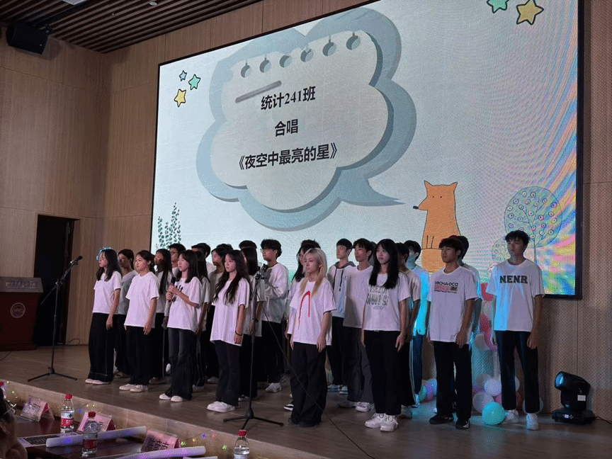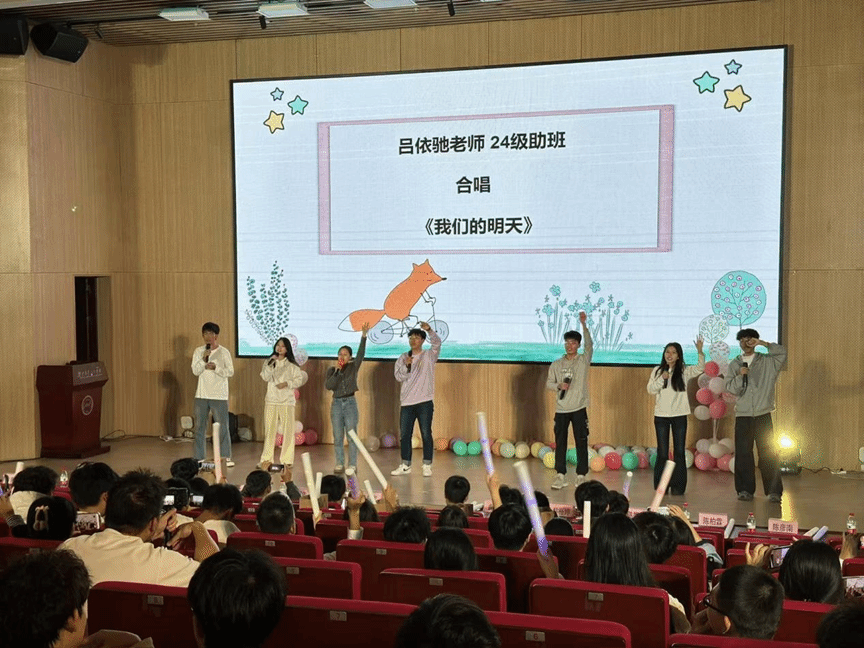 辅导员以及2024级全体助班合唱《我们的明天》给晚会画上一个圆满的句号,期望同学们可以在数科这个大家庭中学有所成,度过开心的四年大学时光。
