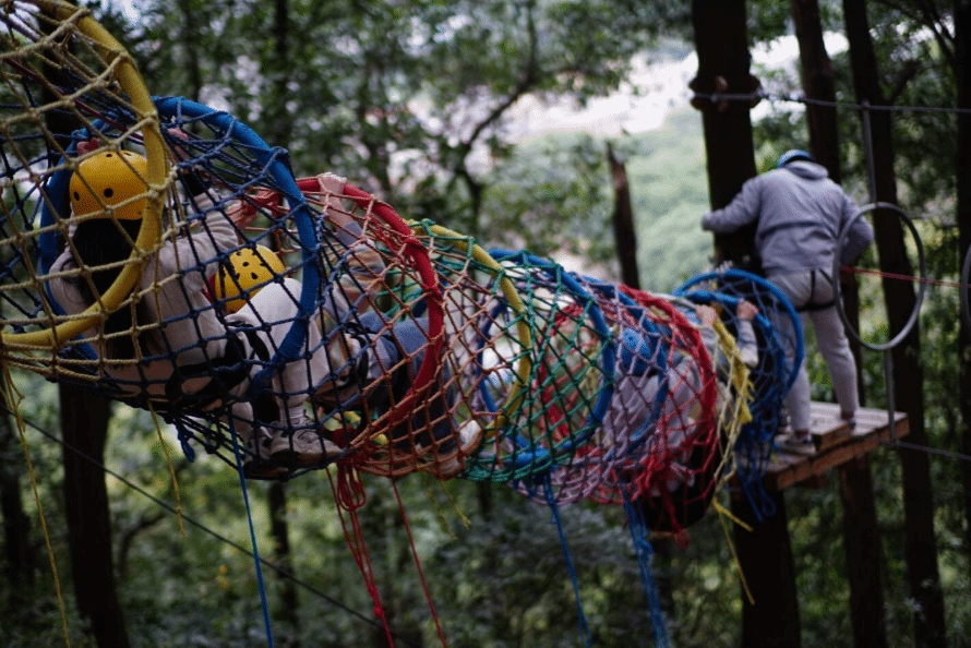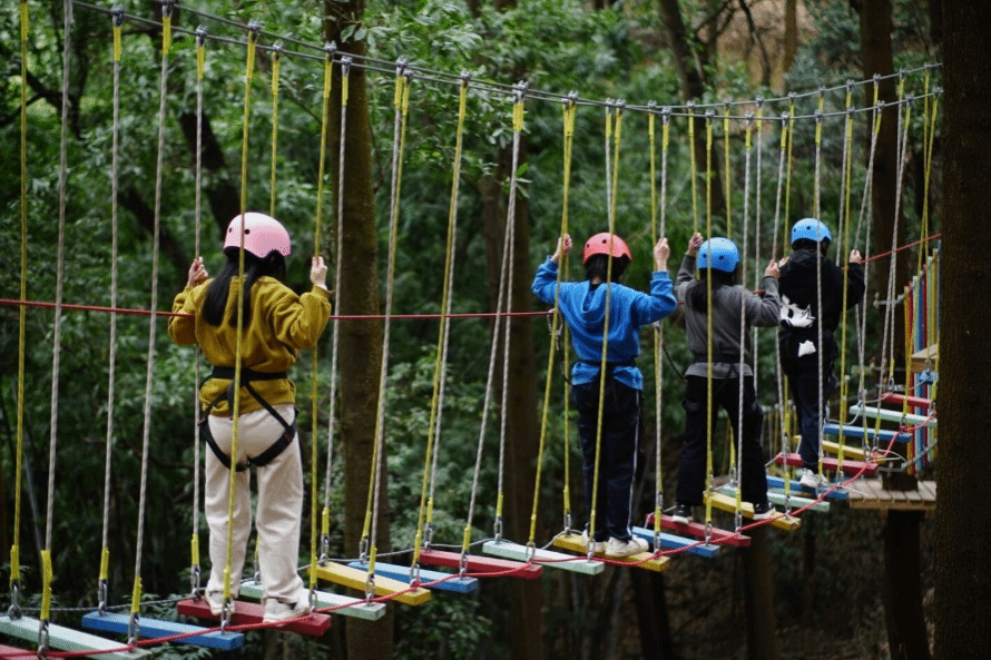 最后一个也是最耗费体力的活动:丛林穿越。它是一项在树上进行的探险项目,用各种各样的障碍缓解将树枝连成一条线路,通过各种各样的前进方式越过障碍,到达终点,整个过程全靠自己的能力通关。