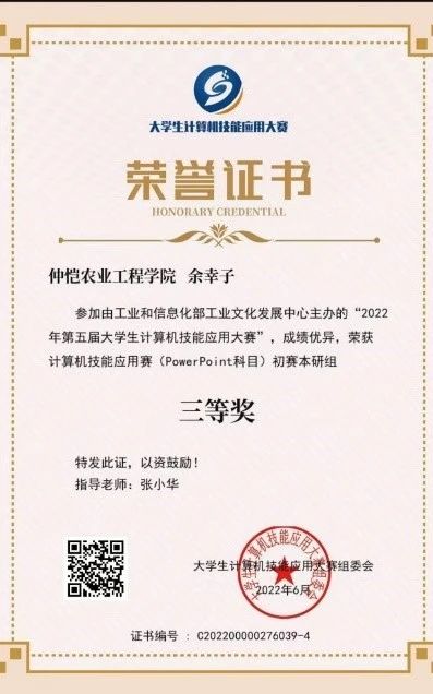 4.2022年获得第五届大学生计算机技能应用赛三等奖;