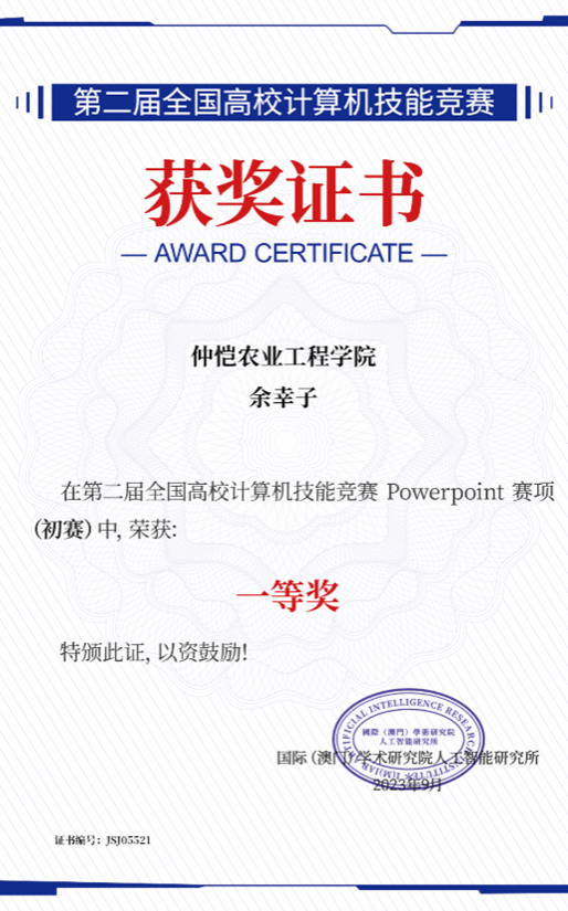 6.2023年获得第二届全国高校计算机技能竞赛一等奖。