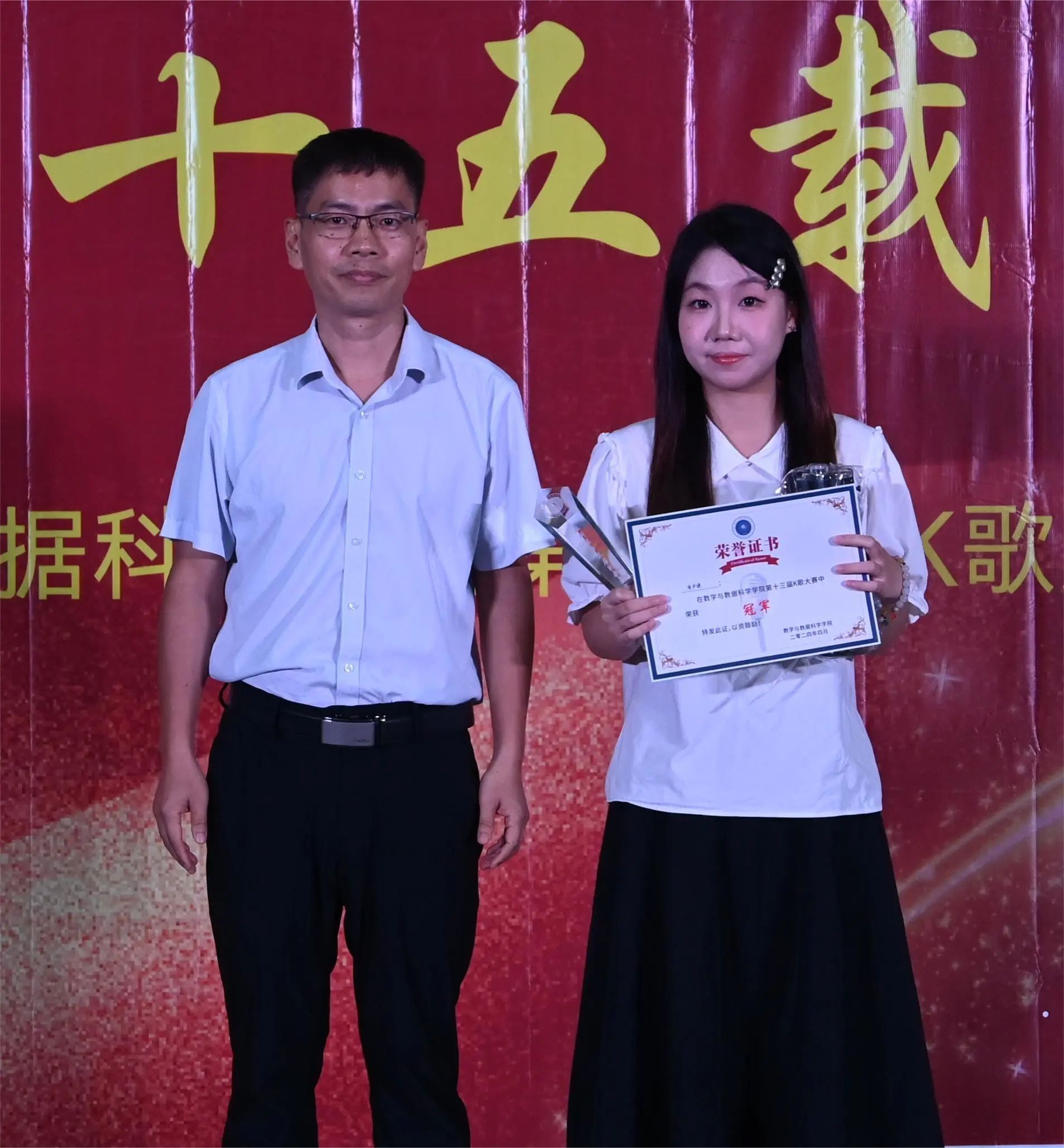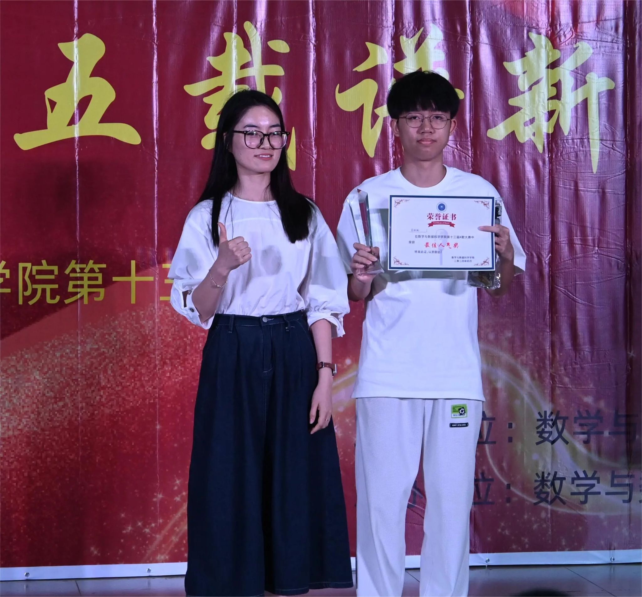 经过激烈的比拼,仲恺路人王获得教师赛道的金奖,银奖由辅导员于昕塍和解廷鑫获得。学生赛道前三甲分别由统计214黄尹婕、统计221周庆亮、统计222刘炘获得,最佳人气奖由统计214梁彬彬获得。