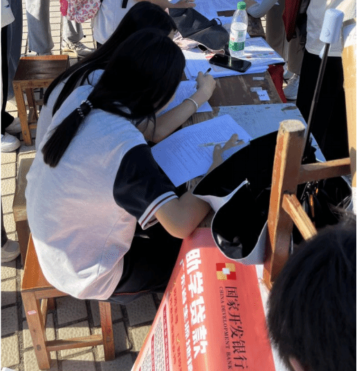 在黄金中学及镇政府的支持下,调研组通过摆摊、问卷调查,助力宣传国家资助政策。在摆摊宣传中,队员们向学生和家长发放助学贷款宣传单,讲解生源地信用助学贷款、申请贷款的金额及贷款用途、以及申请贷款的学生所需材料、贷款期限、还本宽限期等政策,与此同时还发放了问卷调查。