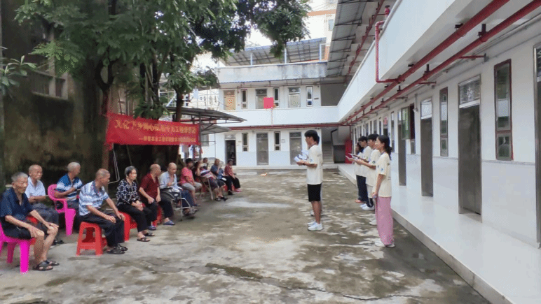 在敬老院院长的支持下,一场充满爱与欢乐的活动拉开了帷幕。活动伊始,队员们就以精心准备的精彩节目为老人们送上了一份独特的欢乐。幽默风趣的舞蹈,充满创意的表演形式和欢快的节奏,在老人们眼前绽放出青春的活力;激昂的红色歌曲合唱,嘹亮的歌声回荡在敬老院上空,唤起了老人们心中的红色记忆;深情的红色短文朗诵,用真挚的情感传递着革命精神,让老人们深受感动。