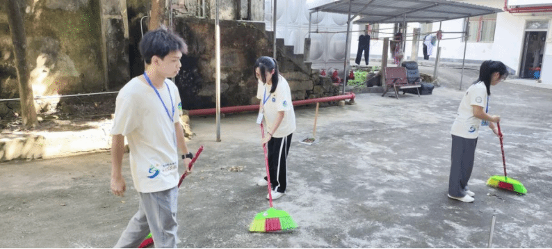 在舞台之外,队员们拿起清扫工具,认真打扫院子,不放过任何一个角落,为给老人们营造一个整洁舒适的环境。他们走进老人的房间,细心地打扫卫生,整理物品,让房间焕然一新。他们还帮忙晾晒被子,让温暖的阳光渗透到每一丝棉絮中。