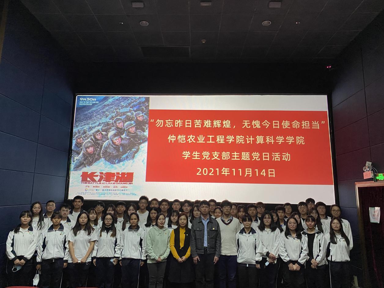 为弘扬伟大的抗美援朝精神,加强爱国主义教育,11月14日下午,计算科学学院学生党支部组织学生党员观看《长津湖》影片。参与本次活动的主要有学院党总委副书记郭肖明、学生党支部书记廖蕃、辅导员吕依驰、辅导员谢廷鑫,以及学生党员和2021级入党积极分子代表。