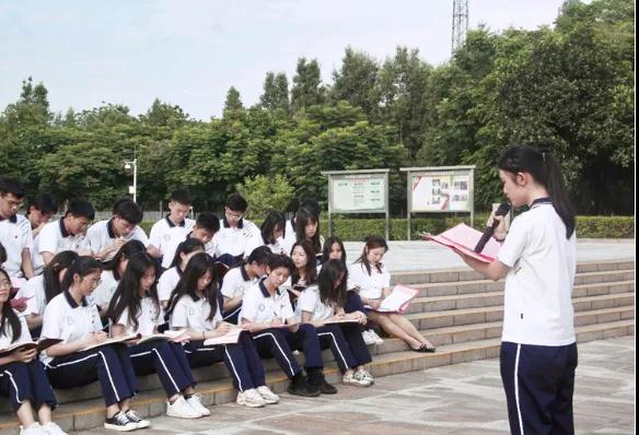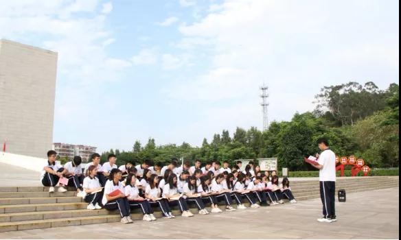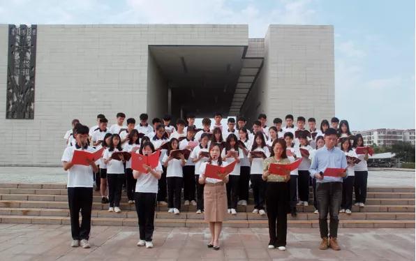 师生党员们在辛亥革命纪念馆前朗诵学生党员讲党课