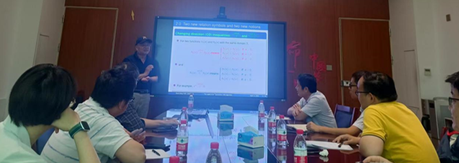 在讲座中,田教授介绍了其科研团队在“具有强收敛性的上穿解求根算法”方面的创新研究进展及其最新成果,主要包括:上穿解算法(US)算法的基本思想、原理及基创新之处,算法过程的U-步和S-步及相应的U-函数构造的基本原理,算法强收敛性及对定义域中任何初值选择算法均收敛的证明,与二分法、牛顿法等其他求根算法的比较分析,数值实验等等。在随后的提问互动环节中,参加讲座的老师踊跃发言、积极互动,田教授教授耐心地解答了大家的疑惑。